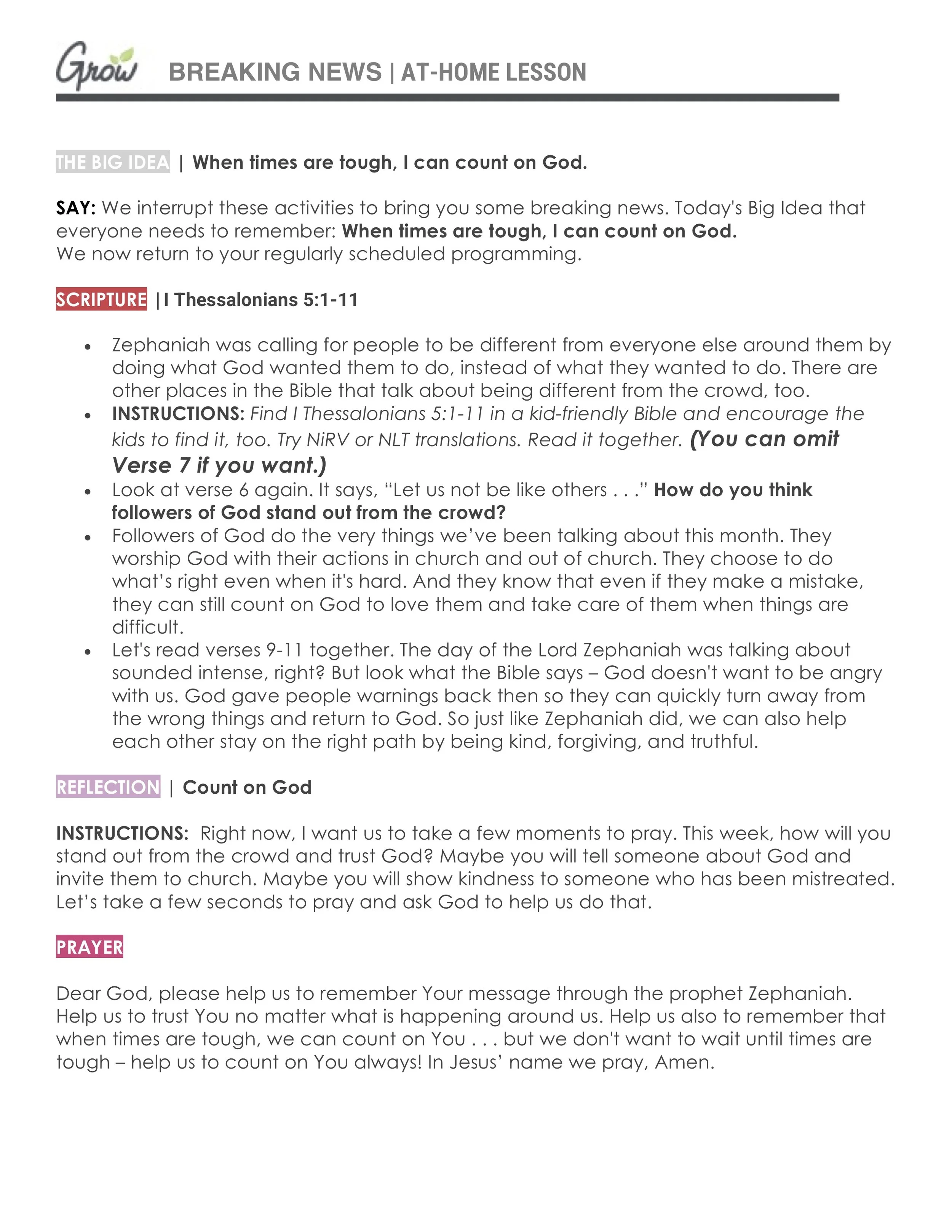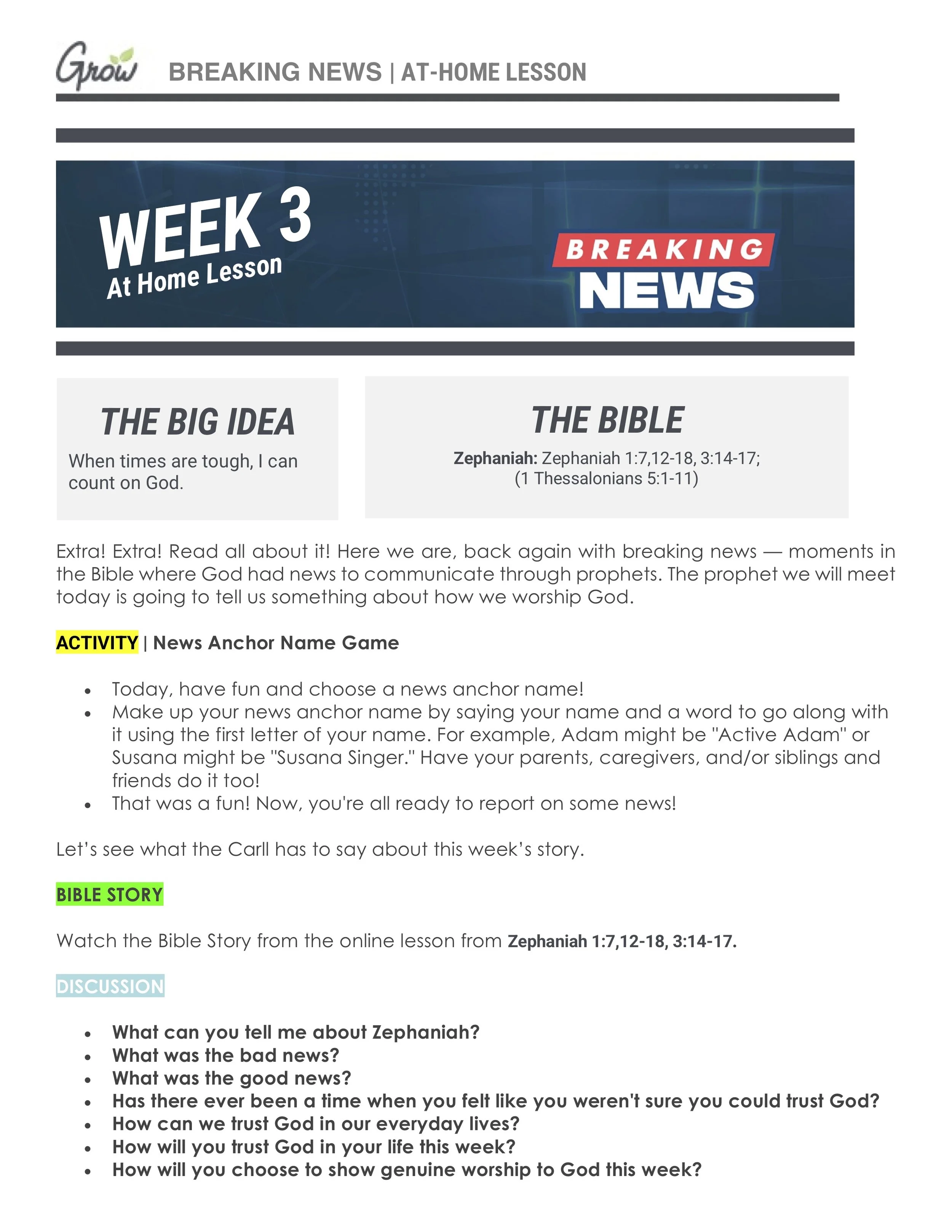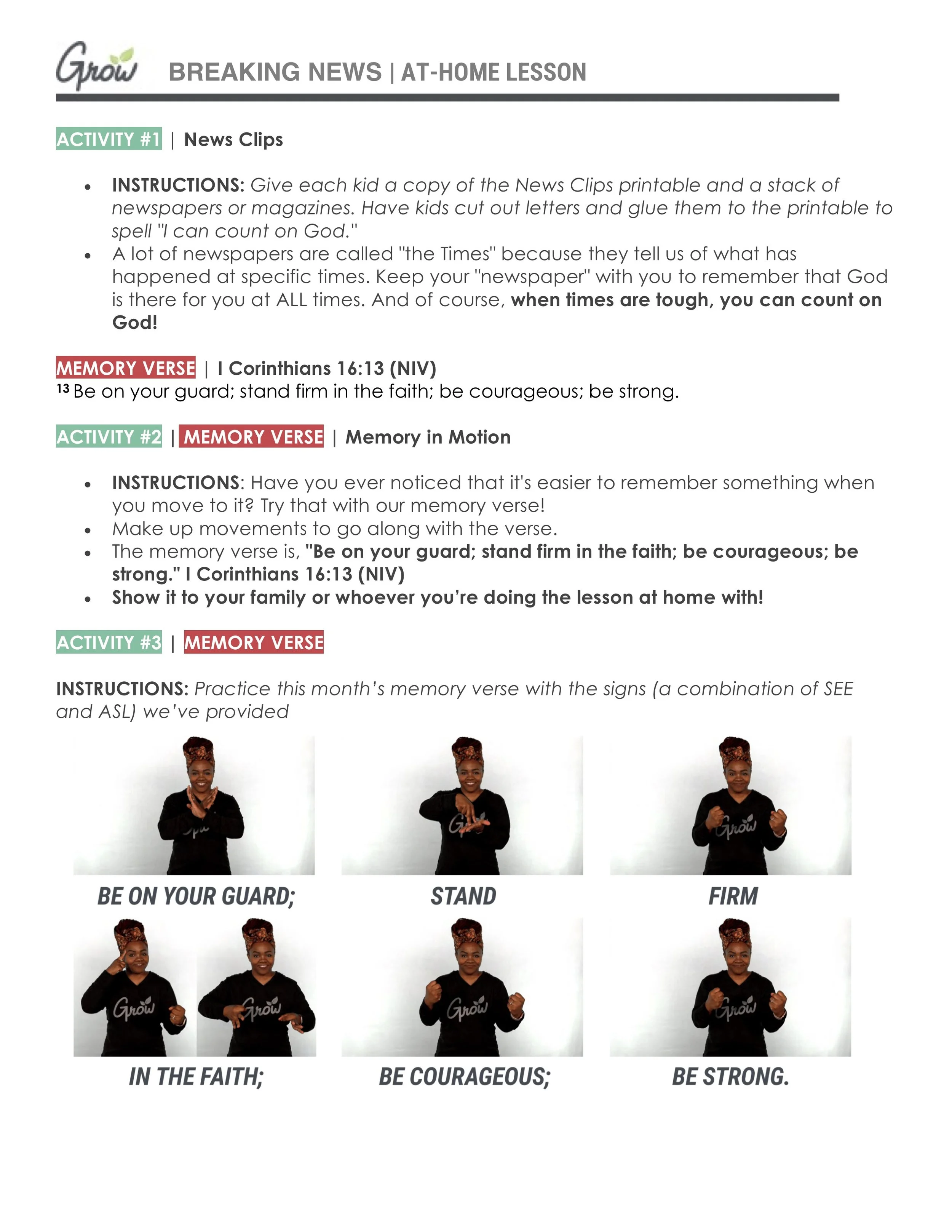 Each week we have a lesson that accompanies our videos. Below is a copy of a lesson you can do at-home to better explore the Big Idea, scripture, and monthly memory verse. You can also download the document, as a whole, below the pictures.
