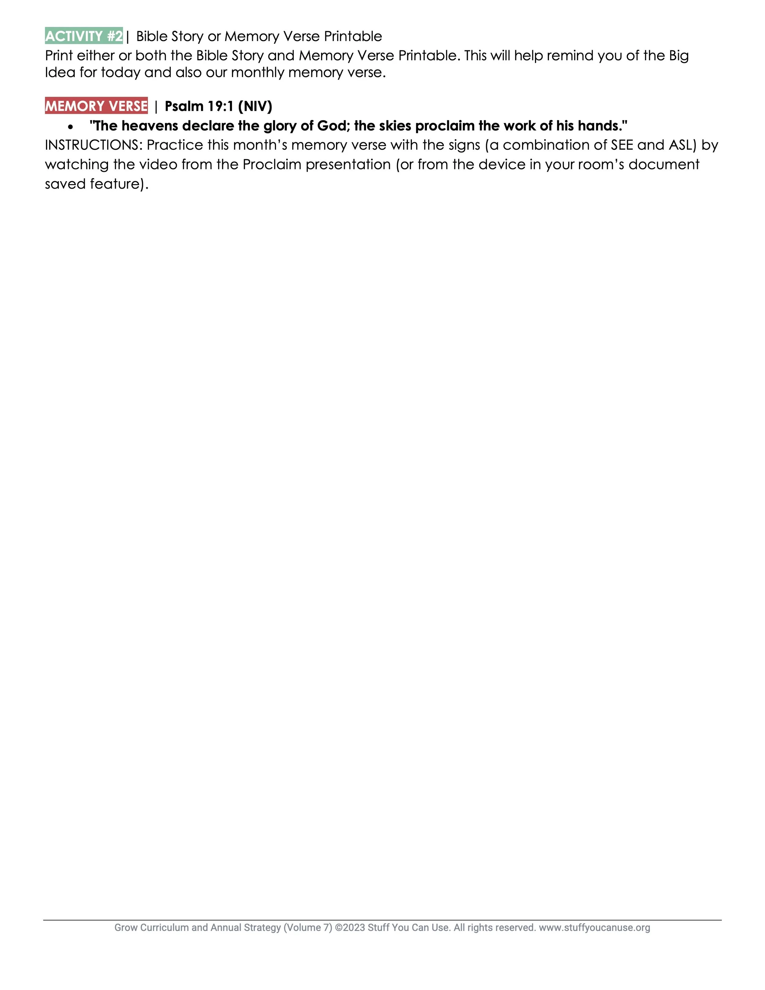 Each week we have a lesson that accompanies our videos. Below is a copy of a lesson you can do at-home to better explore the Big Idea, scripture, and monthly memory verse. You can also download the document, as a whole, below the pictures. If there are links in the lesson, they should work from the downloaded PDF.