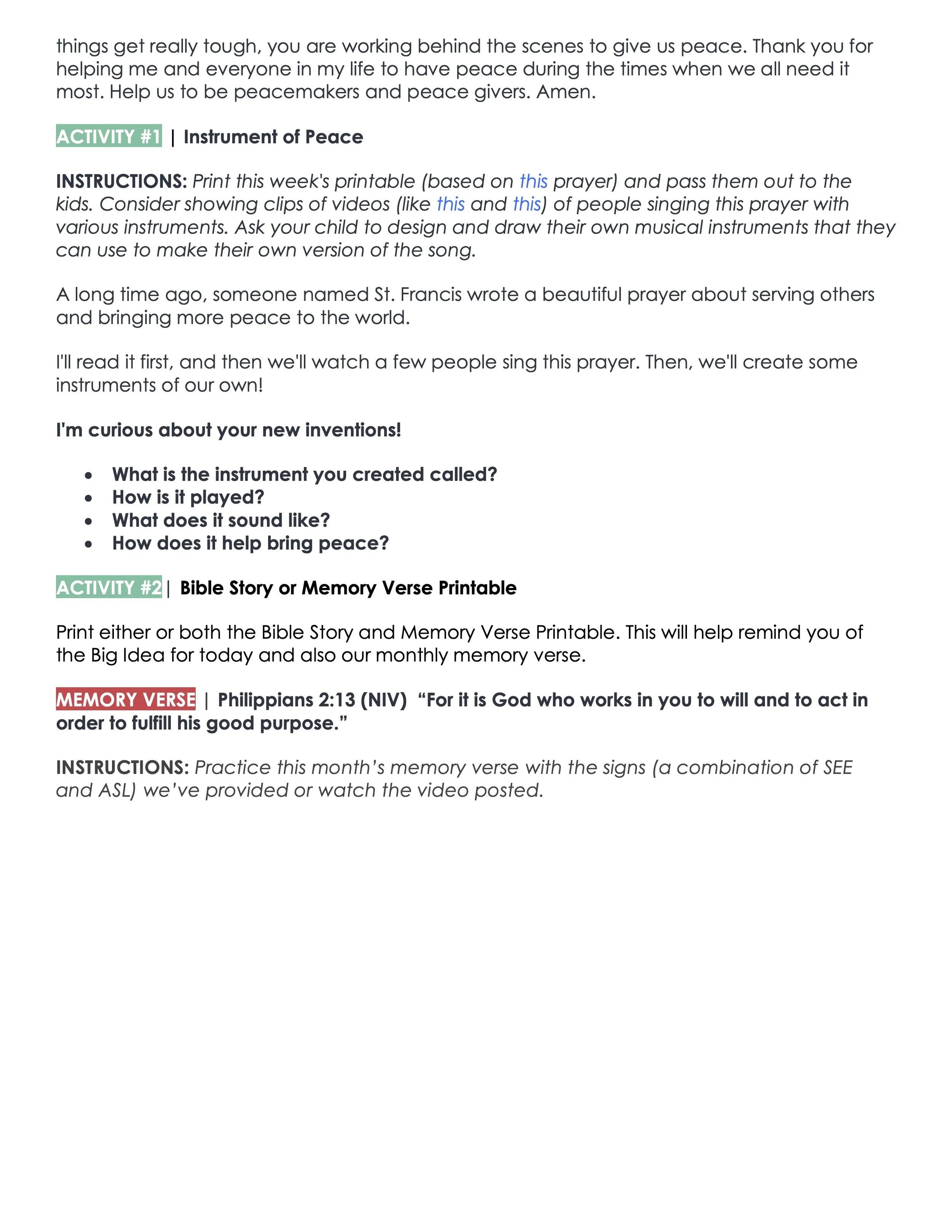 Each week we have a lesson that accompanies our videos. Below is a copy of a lesson you can do at-home to better explore the Big Idea, scripture, and monthly memory verse. You can also download the document, as a whole, below the pictures. If there are links in the lesson, they should work from the downloaded PDF.
