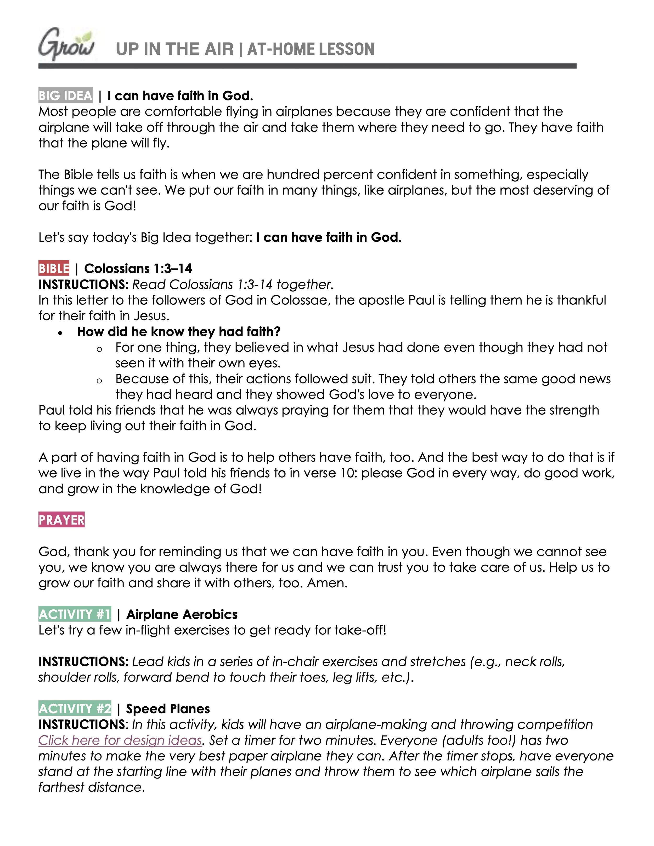 Each week we have a lesson that accompanies our videos. Below is a copy of a lesson you can do at-home to better explore the Big Idea, scripture, and monthly memory verse. You can also download the document, as a whole, below the pictures. If there are links in the lesson, they should work from the downloaded PDF.