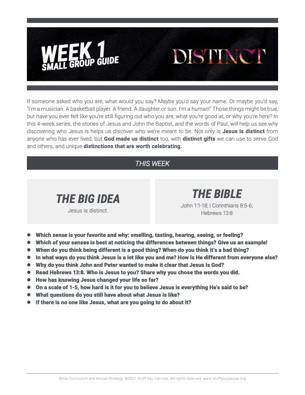 If someone asked who you are, what would you say? Maybe you’d say your name. Or maybe you’d say, “I’m a musician. A basketball player. A friend. A daughter or son. I’m a human!” Those things might be true, but have you ever felt like you’re still figuring out who you are, what you’re good at, or why you’re here? In this 4-week series, the stories of Jesus and John the Baptist, and the words of Paul, will help us see why discovering who Jesus is helps us discover who we’re meant to be. Not only is Jesus is distinct from anyone who has ever lived, but God made us distinct too, with distinct gifts we can use to serve God and others, and unique distinctions that are worth celebrating.
