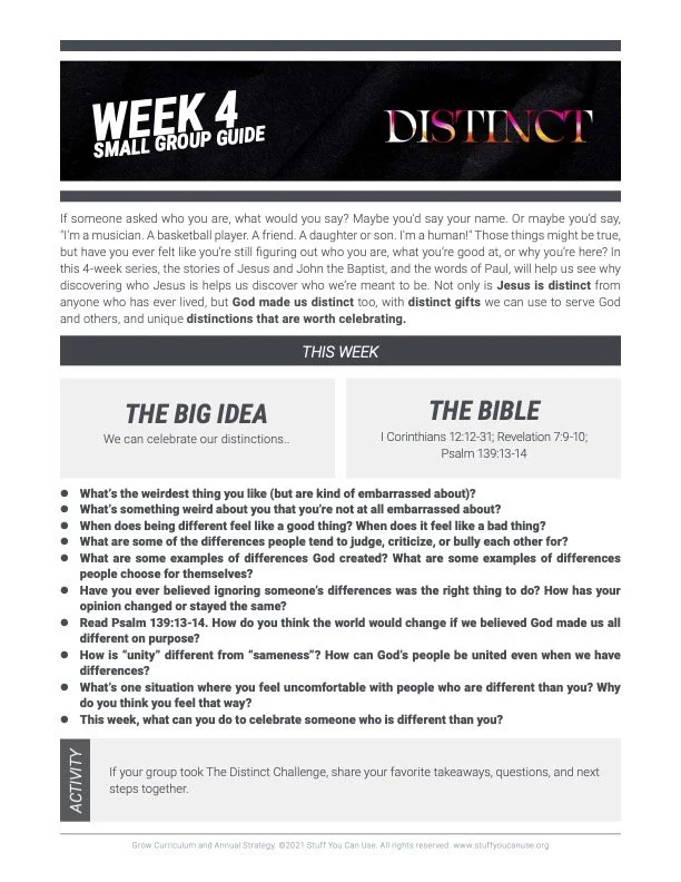 If someone asked who you are, what would you say? Maybe you’d say your name. Or maybe you’d say, “I’m a musician. A basketball player. A friend. A daughter or son. I’m a human!” Those things might be true, but have you ever felt like you’re still figuring out who you are, what you’re good at, or why you’re here? In this 4-week series, the stories of Jesus and John the Baptist, and the words of Paul, will help us see why discovering who Jesus is helps us discover who we’re meant to be. Not only is Jesus is distinct from anyone who has ever lived, but God made us distinct too, with distinct gifts we can use to serve God and others, and unique distinctions that are worth celebrating.