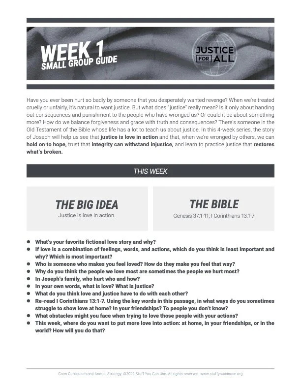 Have you ever been hurt so badly by someone that you desperately wanted revenge? When we’re treated cruelly or unfairly, it’s natural to want justice. But what does “justice” really mean? Is it only about handing out consequences and punishment to the people who have wronged us? Or could it be about something more? How do we balance forgiveness and grace with truth and consequences? There’s someone in the Old Testament of the Bible whose life has a lot to teach us about justice. In this 4-week series, the story of Joseph will help us see that justice is love in action and that, when we’re wronged by others, we can hold on to hope, trust that integrity can withstand injustice, and learn to practice justice that restores what’s broken.