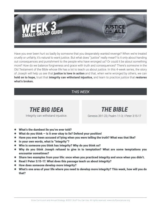 Have you ever been hurt so badly by someone that you desperately wanted revenge? When we’re treated cruelly or unfairly, it’s natural to want justice. But what does “justice” really mean? Is it only about handing out consequences and punishment to the people who have wronged us? Or could it be about something more? How do we balance forgiveness and grace with truth and consequences? There’s someone in the Old Testament of the Bible whose life has a lot to teach us about justice. In this 4-week series, the story of Joseph will help us see that justice is love in action and that, when we’re wronged by others, we can hold on to hope, trust that integrity can withstand injustice, and learn to practice justice that restores what’s broken.